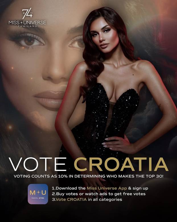 “Hrvatska, trebam vašu pomoć da uđem u Top 30! Preuzmite Miss Universe aplikaciju i glasajte za mene u svim kategorijama! Vaši glasovi čine 10% ukupnog rezultata i odlučuju hoću li ući u Top 30 ili ne. Možemo to ostvariti! Mi smo Hrvatska”, napisala je lijepa misica uz emotikone srca.