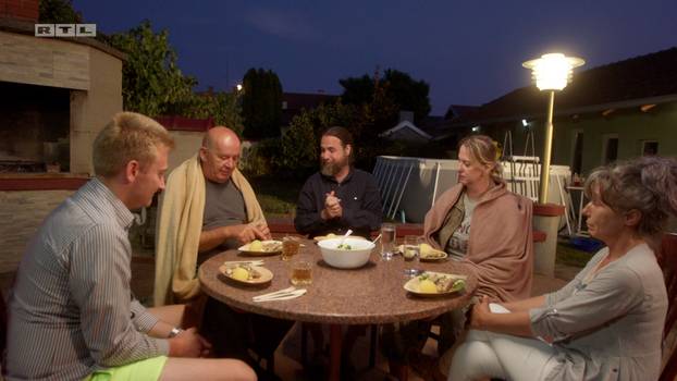 Marin je dočekao ekipu u bazenu, a ubrzo su mu se pridružili Željka, Mladen i Marjan, dok je Snežana ipak odlučila ostati na suhom. „Moram priznati da je nadmašio moja očekivanja“, komentirao je doček Marjan, a Mladen se složio s njim. Kako se ekipa zabavljala u bazenu, domaćin im je predjelo donio u bazen. Očekivano, gosti nisu bili impresionirani predjelom.