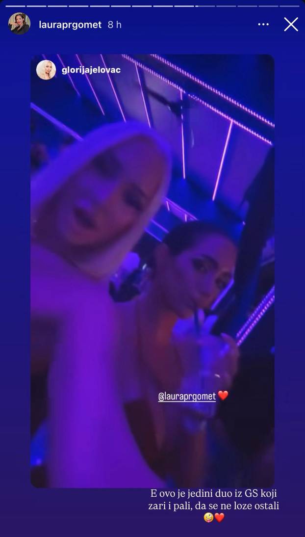 Ipak, mir između ovih dviju ekipica nakratko je poremetila jedna objava. Naime, Laura je nedavno na Instagramu podijelila video s noćnog izlaska u kojem pleše s Glorijom, a u opisu je dodala rečenicu: 'E, ovo je jedini duo iz 'Gospodina Savršenog' koji žari i pali, da se ne lože ostali'.