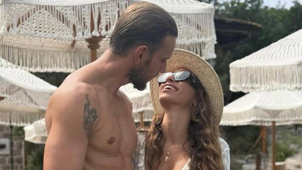 Popularni nogometaš, pozirajući u prugastim kupaćim hlačicama, pritom je pokazao isklesano tijelo, a najviše se ističu njegovi mišići i pločice. S druge strane, Raquel je očarala u bijeloj pletenoj haljini s uzorkom na rupičaste mreže, uz zlatni pojas oko struka. Od detalja je iskombinirala je slamnati široki šešir i crne sunčane naočale.