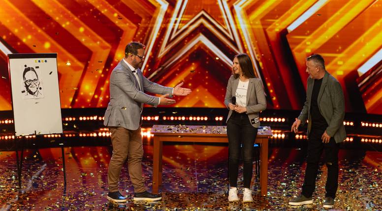 Talentirana Zagrepčanka sjela je na stolac i istodobno počela crtati - objema rukama i nogama. Na crtežu se pojavio portret voditelja Frane Ridjana