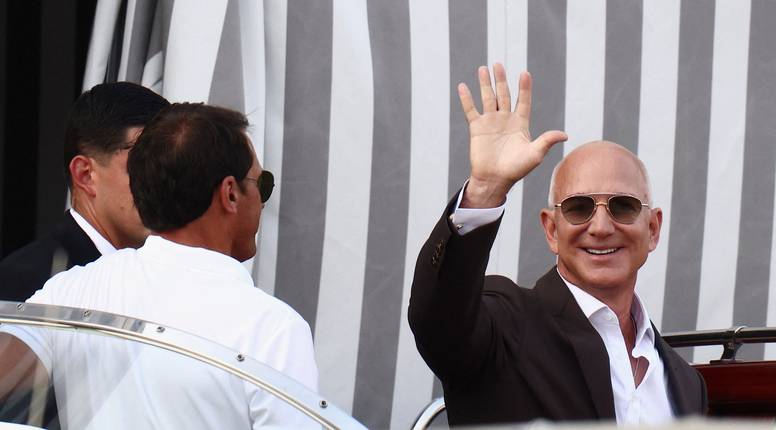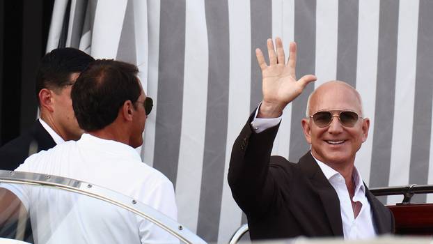 Među slavnima su bile i sestre Kim i Khloe Kardashian koje su se trudile da ne pokisnu, a njihovo osiguranje ih je ispratilo u vodene taksije koji su došli po njih. I mladenku Lauren Sanchez je osiguranje ispratilo u taksi, a Bezos je bio odmah iza nje. No, bez obzira na to što im je kiša možda pokvarila planove, nisu bili loše volje. Dapače, kada su ušli u taksi, par se smijao i dobro zabavljao.