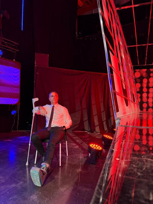 Uz ortopedsku čizmu nastavio je snimati 'Potjeru' te je vodio nekoliko emisija unatoč ograničenjima.