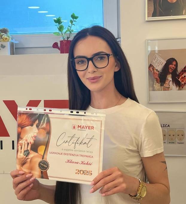 Završila je edukaciju za ugradnju ekstenzija trepavica te pozirala s certifikatom u rukama, a fotku objavila na društvenim mrežama gdje je pokazala i rad na jednoj klijentici.