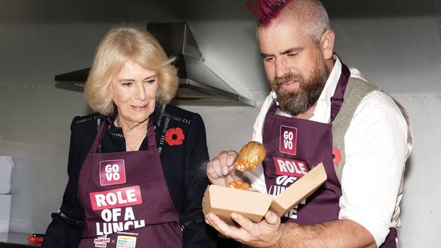 Britanska kraljica Camilla danas se pridružila viralnom Spudmanu u dijeljenju pečenih krumpira posjetiteljima u Clarence Houseu, prenosi Daily Mail. Dvojac koji je zasukao rukave odjenuo je jednake ljubičaste pregače, a prema veselom izrazu lica može se zaključiti da se prilikom rada i dobro zabavio.