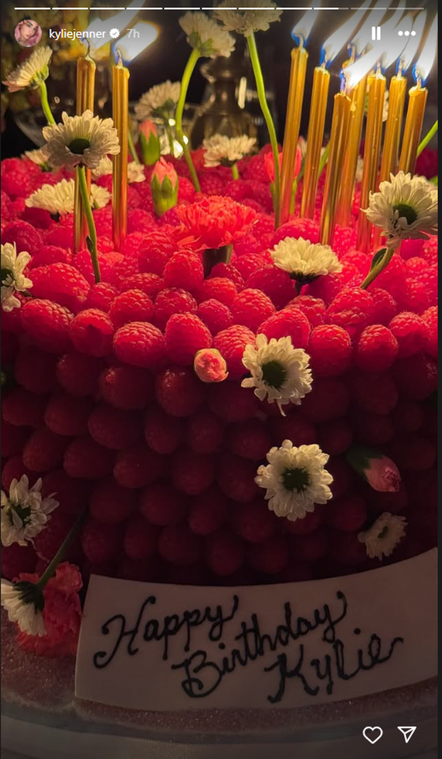 Na društvene mreže, Kylie je objavila fotografije s proslave. Fotkala je stol na kojem je bila velike crvena torta.