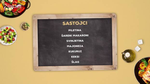 Komentari 1Večeru će pripremiti s piletinom, šarenim makaronima, svinjetinom, majonezom, kukuruzom, keksima i šlagom, a popis namirnica neće se baš svima svidjeti...