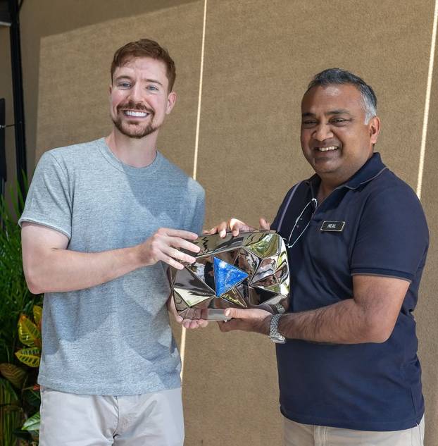 Za razliku od standardnih priznanja koje YouTube dodjeljuje za 100 tisuća, milijun ili 100 milijuna pretplatnika, MrBeastov novi Play Button je unikat.