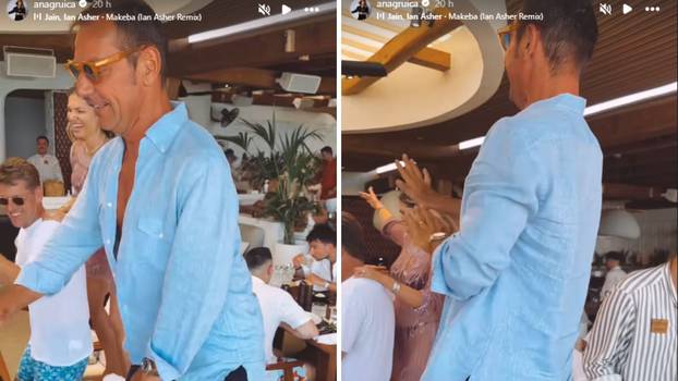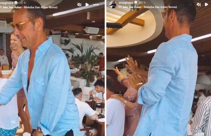 Uglešić se popeo na stolac i zaplesao, micao tanjure i čaše sa stola, dok su se drugi penjali na stol i plesali... Gruica je zatim objavila i snimku s tuluma, a onda ga je označila u Instagram Storyju uz video kako nazdravljaju uz bazen.