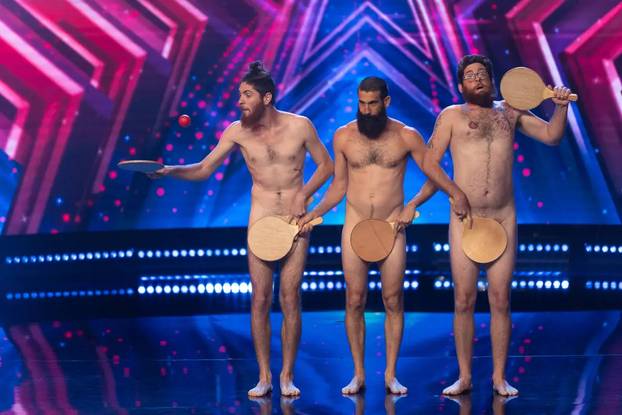 Uslijedio je šok. Na pozornicu su došli - goli. Strateški su bili prekriveni samo reketima.