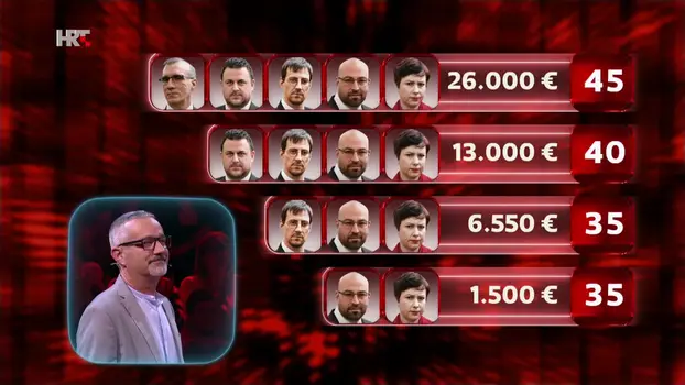 Nakon što je u prvom dijelu igre osvojio 1.000 eura, odlučio se za dvoboj protiv četvero lovaca - Svena, Morane, Mladena i Deana - za 8.500 eura i s 18 sekundi prednosti.