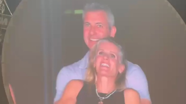 Izmijenjivali su nježnosti, a njihova lica su se u jednom trenutku pojavila na velikom ekranu. Kada su shvatili da svi gledaju u njih, panično su se razdvojili i pokušali sakriti, no snimka je postala viralni hit. Da bi stvar bila još gora, frontmen benda Chris Martin je komentirao kako njih dvoje imaju aferu ili su pak jako sramežljivi.