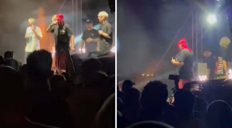 - 'Ajde nemoj bacat' više, je***e - poručio je s pozornice, a zatim se čuje i kako netko pita: 'Tko je bacio led?' te tu snimka staje.