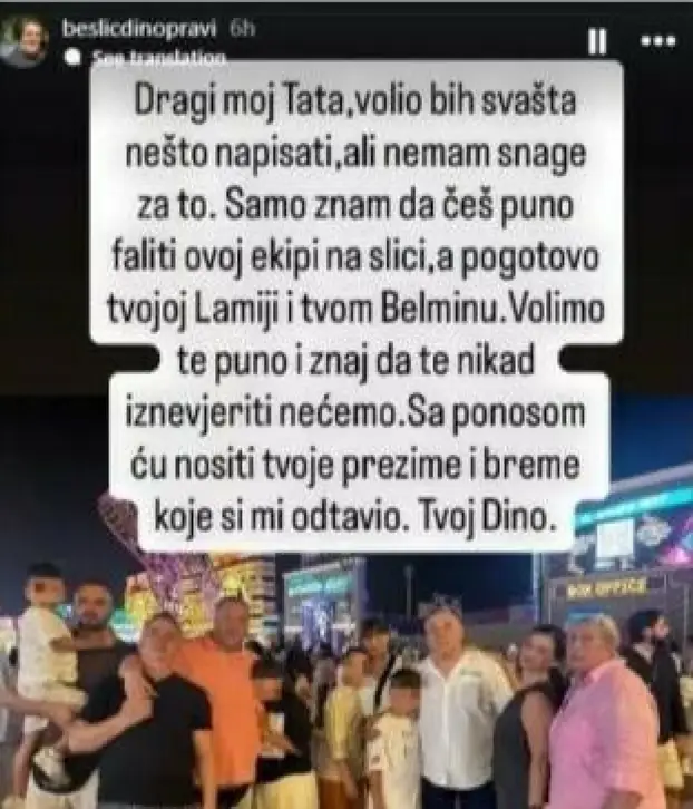 Dino Bešlić, sin pokojnog Halida, na Instagramu je objavio obiteljsku fotografiju i emotivnu poruku ocu. U nekoliko rečenica napisao je koliko će mu nedostajati, posebno unucima Lamiji i Belminu
