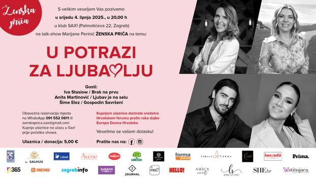 Deseto ovosezonsko izdanje 'Ženske priče' održat će se u klubu hrvatskih glazbenika SAX! (Palmotićeva 22, Zagreb), u srijedu 04.lipnja 2025. u 20 sati, a sav prihod od ulaznica donirat će se Hrvatskom forumu protiv raka dojke Europa Donna Hrvatska. Show je kao i svaki mjesec rasprodan, a video će biti objavljen u nedjelju 08.lipnja 2025. na youtube kanalu voditeljice Marijane Perinić.