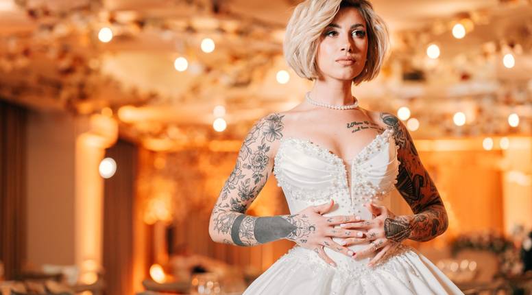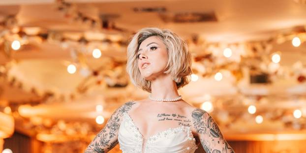 Ona i njezin partner odudaraju od stereotipa: tetovaže, kontrast stilova, emotivna intimnost i estetika koja spaja glamur i punk senzibilitet. Nema svatova. Nema programa. Nema ukrasa radi dojma. Samo njih dvoje. I ljubav koja se ne objašnjava, nego živi.
