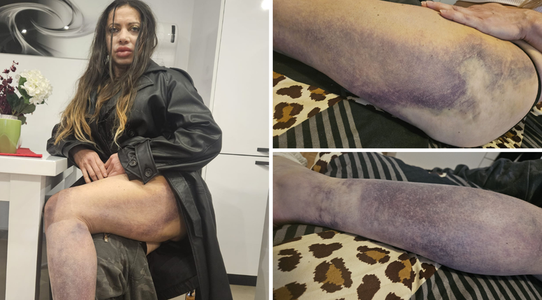 Na fotografijama koje nam je poslala se vidi kako su joj noge prekrivene tamnim, gotovo crnim modricama.