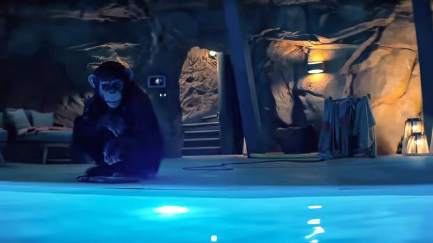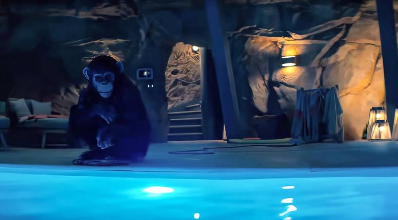 Jedne duge i mračne noći, Lucy, njezina sestra i nekolicina prijatelja ostaju zarobljeni u kući, a jedino privremeno utočište pronalaze u bazenu, znajući da čimpanze ne mogu plivati. Film se tada pretvara u napetu igru mačke i miša, gdje svaki izlazak iz vode ili pokušaj poziva u pomoć može biti koban.