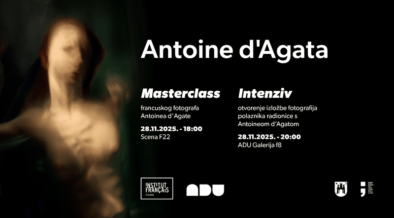 U suradnji Francuskog instituta u Hrvatskoj i Akademije dramske umjetnosti Sveučilišta u Zagrebu, s posebnim zadovoljstvom najavljujemo dolazak istaknutog suvremenog francuskog fotografa Antoinea d’Agatae, člana legendarne agencije Magnum Photos i jednog od najradikalnijih autora današnjice.