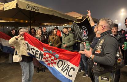 ZAGREB - Večeras se u Areni održava koncert Marka Perkovića Thompsona, a mnogi fanovi počeli su pristizati u i pred Arenu već u poslijepodnevnim satima. Ispred dvorane okupljeni posjetitelji zagrijavaju se za koncert pjevajući Thompsonove pjesme, među kojima su 'Lijepa li si' i 'Geni geni kameni'. Dio publike nosi i zastave