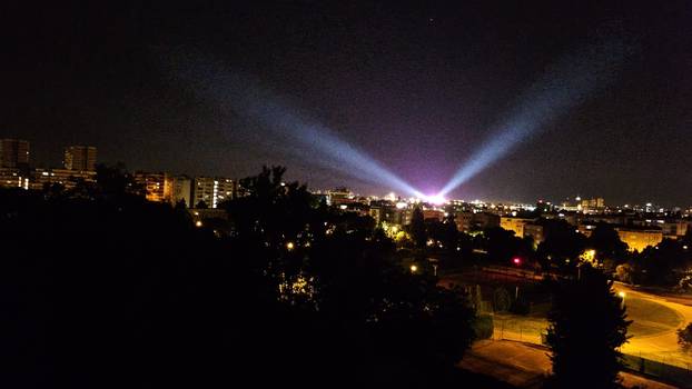 Sve se više bliži veliki koncert Marka Perkovića Thompsona na zagrebačkom Hipodromu, a pripreme za 5. srpnja se privode kraju. Tako je Zagrepčane u subotu navečer zainteresiralo svjetlo koje se dizalo u nebo, pa su se brojni građani pitali odakle dolaze tako jaki reflektori.