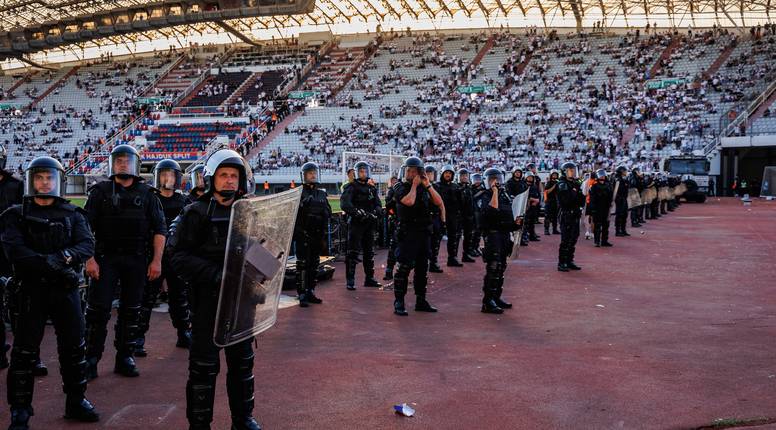 Po završetku utakmice veća skupina izgrednika napala je policijske službenike izvan stadiona. Bacali su kamenje, pirotehnička sredstva i metalnu ogradu. Policija je brzo reagirala, uspostavila red i privela 36 osoba. U tom su napadu lakše ozlijeđena 21 policijska službenika, a djelatnici hitne pomoći im sanirali ozljede na terenu. Jedna osoba je zadržana u bolnici zbog zasad neutvrđenih ozljeda. Nad 11 osoba se još provodi kriminalističko istraživanje.
