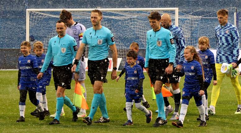 Sucu Patriku Pavlešiću očito nije zima. Većina igrača i pomoćni suci ispod dresa su obukli podmajice, ali glavni sudac utakmice odlučio se za dres kratkih rukava