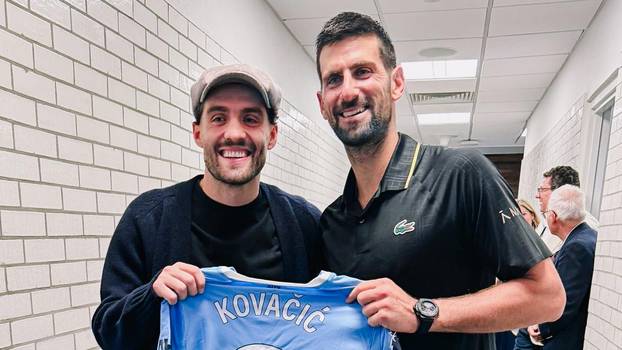 Đoković je pobijedio Taylora Fritza, a meč je s tribina pratio i nogometaš Manchester Cityja. Suprugu Isabel i Matea snimile su kamere u VIP loži Billie Jean King teniskog centra, a nakon meča Đoković i Kovačić zajedno su pozirali s dresom "građana".