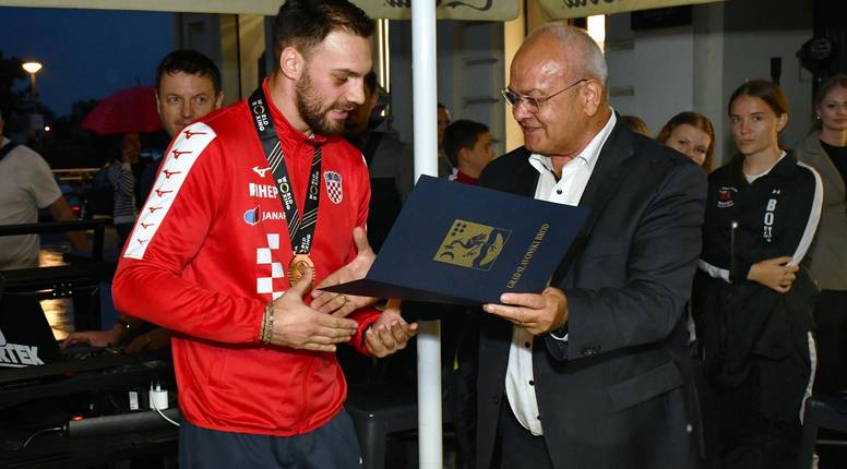 Gabrijel Veočić dočekan je u Slavonskom Brodu nakon što je na Svjetskom prvenstvu u Liverpoolu osvojio brončanu medalju, prvu za hrvatski boks nakon 20 godina