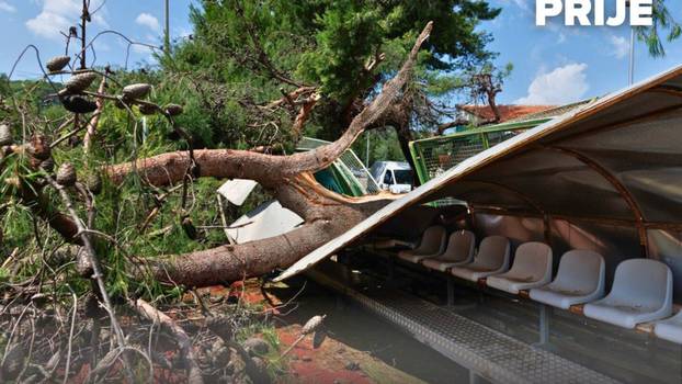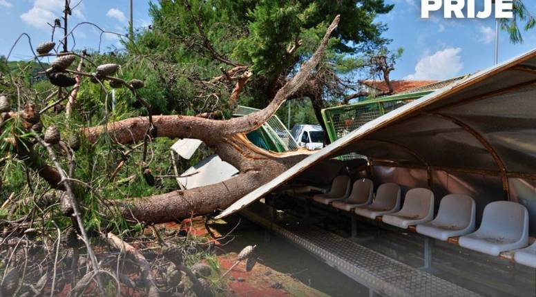 Nevrijeme koje je u utorak ujutro pogodilo Split oštetilo je stadion Poljud, ali i pomoćne terene. Polomljena stabla, porušena ograda i klupe, sve to dočekalo je zaposlenike Hajduka koji su u radnoj akciji s vatrogascima iz JVP Podstrana očistili i pripremili veći teren za večernji trening. Onaj manji s umjetnom travom bio je pod vodom