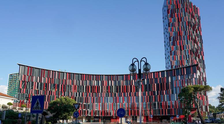 Air Albania Stadium, smješten u samom središtu Tirane, moderna je i arhitektonski upečatljiva sportska građevina koju je projektirao talijanski arhitekt Marco Casamonti. Stadion se ističe oktogonalnim oblikom i fasadom od crvenih i crnih metalnih panela, inspiriranih albanskom zastavom i tradicionalnim albanskim tepisima. Arhitekt je u dizajn uključio i obnovljenu fasadu starog stadiona Qemal Stafa, čime je objekt dobio i klasične elemente u stilu grčko-rimskog teatra. U sklopu kompleksa nalazi se i toranj s hotelom te Muzej albanskog nogometa.