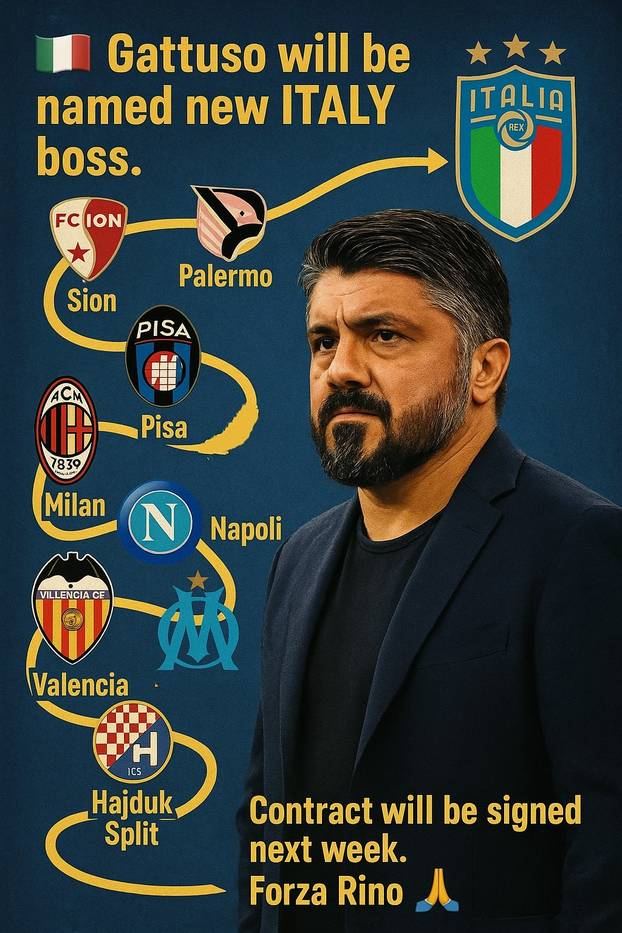 Talijanski mediji objavili su fotomontažu Gattusova trenerskog puta na kojem se vide postaje Palermo, Sion, Pisa, Milan, Napoli, Marseille, Valencia i Hajduk uz informaciju o preuzimanju Italije. Umjetna inteligencija neke je grbove nacrtala s više, neke s manje uspjeha, a Hrvatima u svakom slučaju u oko upada promašeni grb Hajduka po uzoru na Dinamov. Inteligencija je očito s razlogom umjetna...