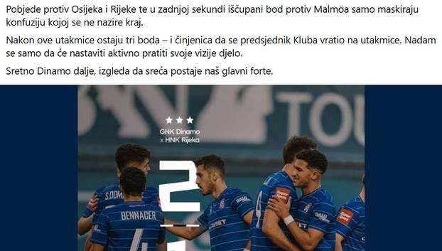 Sretno Dinamo dalje, izgleda da sreća postaje naš glavni forte", napisao je Antolić.
