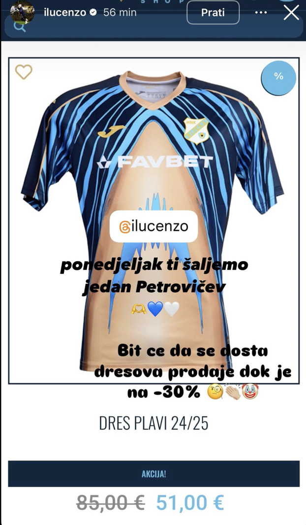 "Bit će da se dosta dresova prodaje kad je na 30 posto popusta"