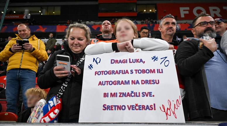 “Dragi Luka, fotografija s tobom ili autogram na dresu značili bi mi sve. Sretno večeras”, napisala je na transparentu koji je ukrasila crvenim i plavim slovima što podsjećaju na boje Hajduka.