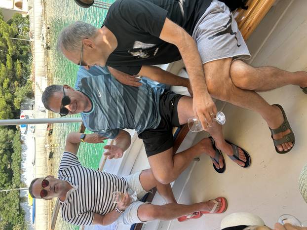 Druženje prijatelja olimpijaca potrajalo je cijeli dan na brodu Lipa moja, usidrenom iznad kaveza s vinom, koje se vadilo po potrebi. Uz dobro društvo, izvrsnu spizu i kapljicu nije trebalo dugo da krene i pjesma. Svi su obećali da će se na istom mjestu naći i sljedeće godine - na degustaciji ulja iz amfore.