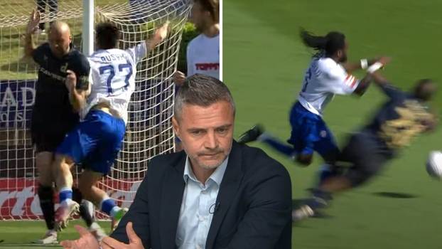 55. minuta, dosuđeno zaleđe Pierre-Gabriela, koji je u nastavku napucao loptu, tražio se žuti - Da budem iskren, ja bih mu ga pokazao. Je da je on svirnuo samo sekundu i pol ranije, ali vidi se... Moraš ocijeniti da Gabriel zna što radi i da ju udari. Uputa je da ako je stvarno jako blizu nakon zvižduka da se ne daje, ali osjeća se da ju on namjerno udari.