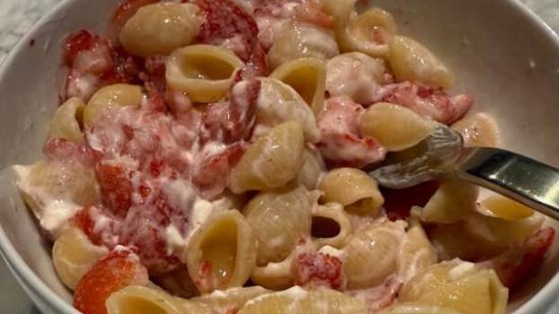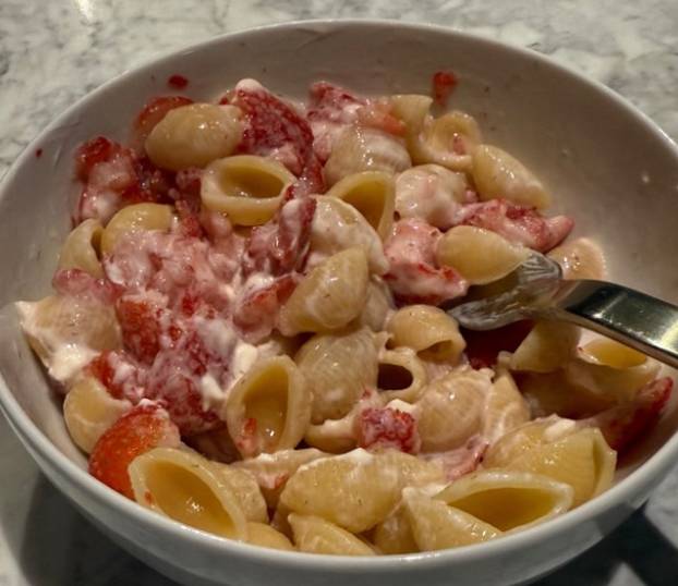 - I ovdje su jagode odlične. Drugačije su, ali su i dalje odlične. Moj tata dodaje vrhnje i šećer. Ja pokušavam s jogurtom da barem izgledam kao da jedem nešto zdravo. Tjestenina ide sa svime. Ali s jagodama je najbolja.
