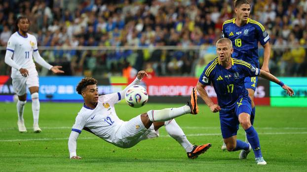 Susret je odigran u poljskom Wroclawu, jer Ukrajina zbog ruske agresije ne može biti domaćin na svom tlu. Francuska je pobijedila 2-0, a u drugom susretu iz skupine D Island je svladao Azerbajdžan s 5-0. Francuska i Island nakon starta kvalifikacija imaju po tri boda, dok su Ukrajina i Azerbajdžan na nuli. Samo pobjednici skupina direktno će se plasirati na SP, koje se sljedeće godine održava u SAD-u, Kanadi i Meksiku.