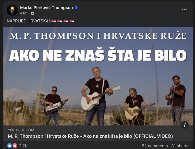 Nakon svega na društvenim mrežama reagirao je i Thompson. Na stranici koju vodi njegov menadžment poslao je poruku sa samo dvije riječi: "Naprijed Hrvatska", a ispod statusa stavio je i pjesmu "Ako ne znaš šta je bilo". U kratkom roku prikupio je više od tisuću reakcija na objavu.