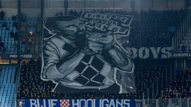 Tijekom utakmice u Malmöu Bad Blue Boysi su na ogradu gostujuće tribine izvjesili veliki transparent s natpisom "Blue Hooligans". Na njemu je prikazan muškarac koji pali cigaretu, uz natpis "Violence in our minds" ili u prijevodu "nasilje u našim glavama".