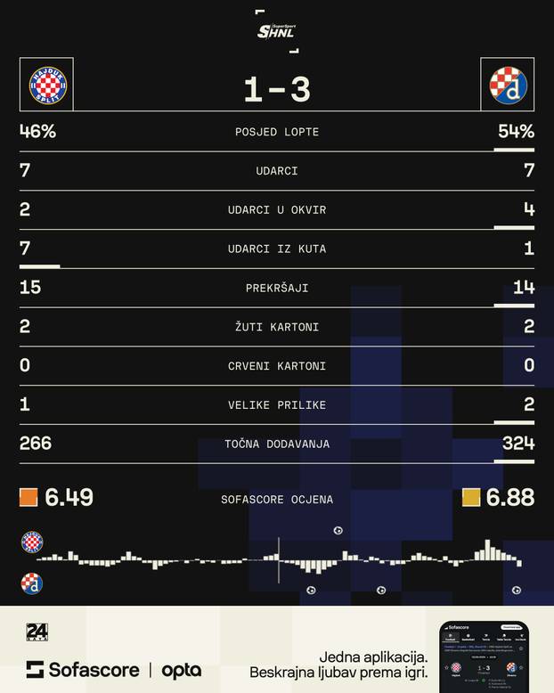 Statistika utakmice Hajduk - Dinamo: