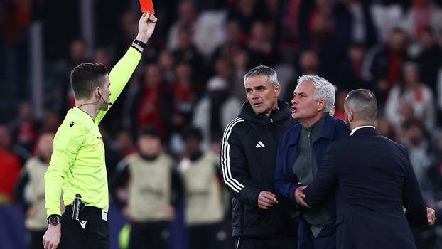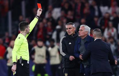 85' Temperamentni Mourinho je dobio crveni karton zbog prigovora sucu.