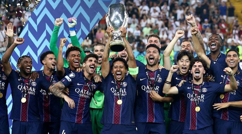 Nogometaši PSG-a pobjednici su europskog Superkupa nakon što su u Udinama pobijedili Tottenham boljim izvođenjem jedanaesteraca sa 4-3. Susret je nakon 90 minuta završio 2-2, nakon što je Tottenham do 85. minuti vodio sa 2-0. Tottenham je poveo u 39. minuti golom Mickyja van de Vena, a u 48. minuti je Cristian Romero zabio za 2-0. PSG je u samoj završnici uspio izjednačiti preko Kanga-in Leea (85) i Goncala Ramosa (90+4) gurnuvši susret u lutriju jedanaesteraca. Prilikom izvođenja jedanaesteraca presudili su promašaji Van de Vena i Tela, dok je Vitinha bio neprecizan kod Parižana. Mladi hrvatski nogometaš Luka Vušković ostao je na klupi Tottenhama.