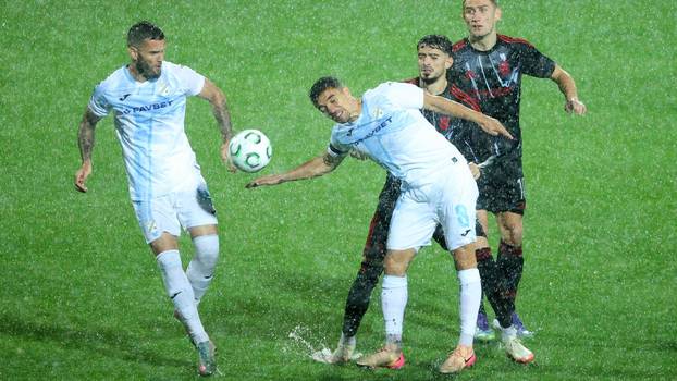 Podsjetimo, utakmica 2. kola Konferencijske lige se trebala igrati u četvrtak, ali je zbog potopa koji je pogodio Kvarner i kišom natopljenog travnjaka dva puta prekidana. Glavni sudac Englez Robert Jones prvi put je igrače poslao u svlačionicu nakon 13 minuta igre. Nakon inspekcije terena u 20 sati glavni sudac i delegat su odlučili da će dvoboj biti nastavljen u 21 sat.