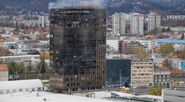 Požar, koji je izbio u noći 17. studenog, započeo je na predzadnjem, 15. katu, i brzo se proširio vertikalno kroz konstrukcijske otvore, zahvativši krovište i niže etaže. Više od stotinu vatrogasaca s desecima vozila borilo se s vatrom, no zbog opasnosti od urušavanja i pada stakla, gašenje iz unutrašnjosti zgrade bilo je gotovo nemoguće. Šteta je, prema riječima gradonačelnika Tomislava Tomaševića, totalna.