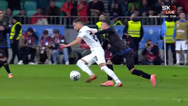 Slovenija je dočekala Kosovo s kakvim-takvim nadama da se pobjedom mogu uključiti u borbu za drugo mjesto u skupini i mjesto u playoffu. Već u šestoj minuti Kosovari su poveli golom Asllani, ali Sloveniji je posao znatno otežan u 53. minuti kada je Petar Stojanović dobio drugi žuti karton.