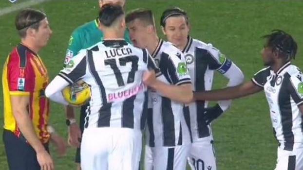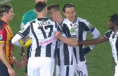 Naime, izvođač penala u Udineseu je kapetan Florian Thauvin, ali Lucca mu nije htio dati loptu!? Okružili su strijelca suigrači, tražili da prepusti penal izvođaču, ali Talijan nije popustio. Čak je dobio žuti karton zbog ponašanja prema suigračima.