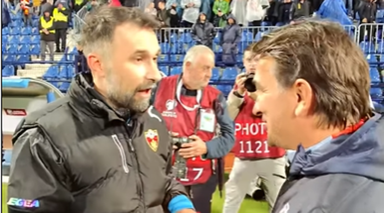 Kamere su uoči utakmice zabilježile i simpatičan razgovor između izbornika Mirka Vučinića (42) i Zlatka Dalića (59). Razmijenili su poklone, a naš izbornik je tom prilikom svom mlađem kolegi poručio: