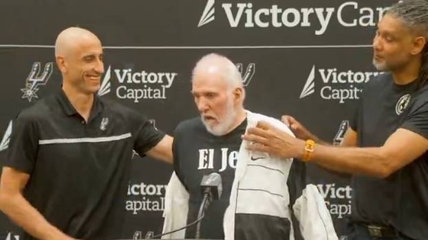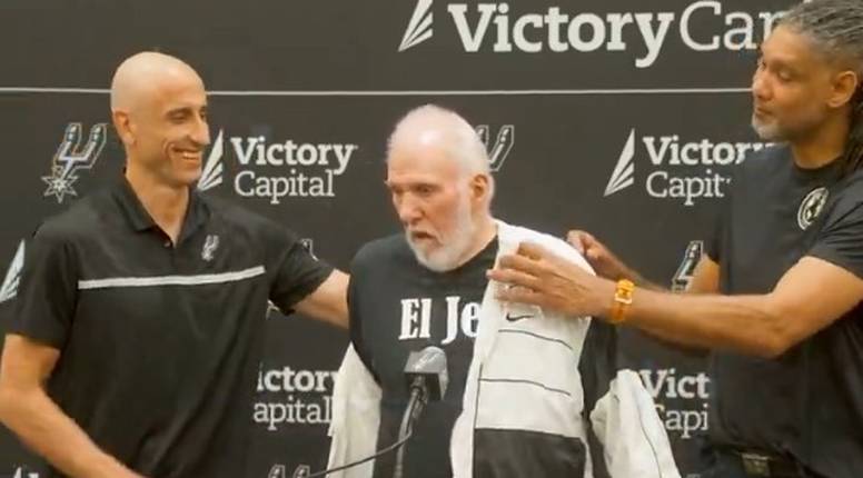 Popovich se u ponedjeljak prvi put pojavio u javnosti nakon moždanog udara i velikih promjena u organizaciji Spursa. Na konferenciji za javnost uz njega su se pojavili i legendarni košarkaši te članovi Manu Ginobili (47) te Tim Duncan (49).